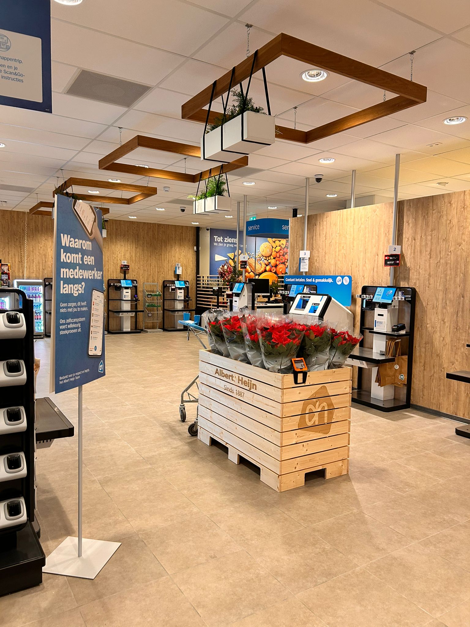 Het vernieuwde versplein springt meteen in het oog, met extra veel groenten, fruit, maaltijdgemak, vers brood én verse bloemen. Ook het zelfscanplein kreeg een boost: van 16 naar 25 betaalstations. En handig voor wie met cash betaalt: er staat nu één zelfscanmachine die munten en biljetten aanneemt. Betaal je liever aan een bemande kassa? Dat kan! Daar zijn er twee van.