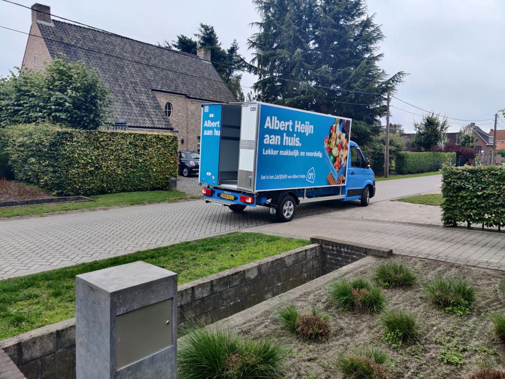 Boodschappen geleverd: voor particuliere én zakelijke klanten. In juli 2020 lanceerde Albert Heijn lanceerde succesvol ‘Albert Heijn aan huis’: die levert boodschappen aan huis bij particuliere klanten. Vandaag staat de teller op 219 Vlaamse gemeenten waar boodschappen geleverd kunnen worden. In al die gemeenten kunnen ook zakelijke klanten boodschappen op factuur bestellen. Met de zakelijke dienst ‘Albert Heijn op ’t werk’ mikt Albert Heijn op KMO’s, zelfstandige beroepers en zelfstandige ondernemers. Deze dienst werd in maart 2022 gelanceerd.